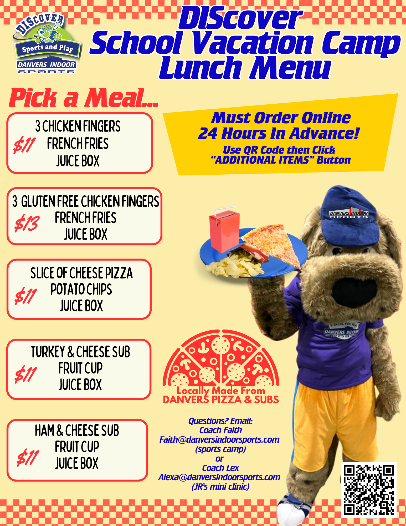We have partnered up with our friends at Danvers Pizza & Subs to provide the following lunch options: